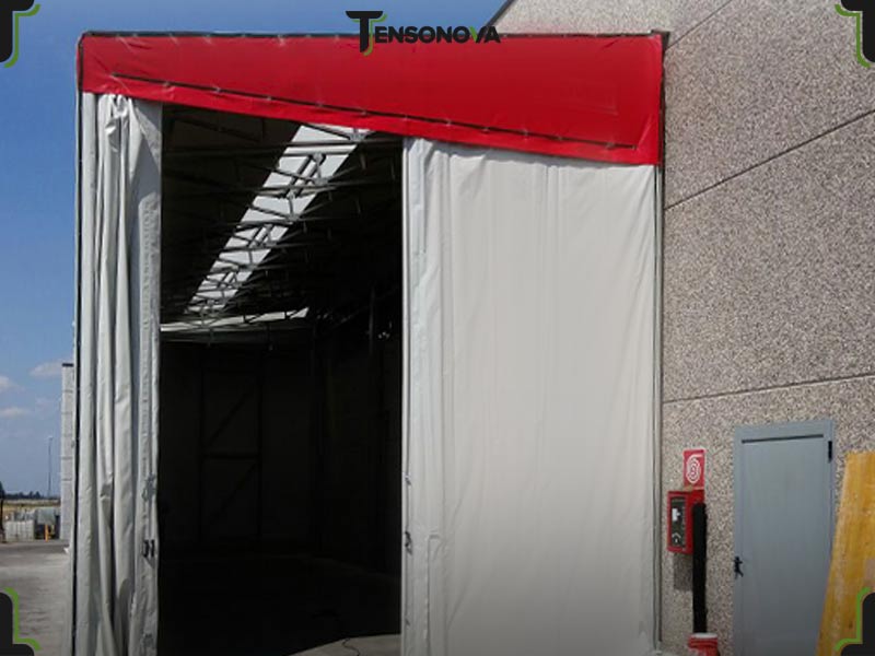 Nel caso di passaggi frequenti dei mezzi aziendali, queste coperture mobili in pvc possono essere completate con porte rapide ad impacchettamento che facilitano gli spostamenti.